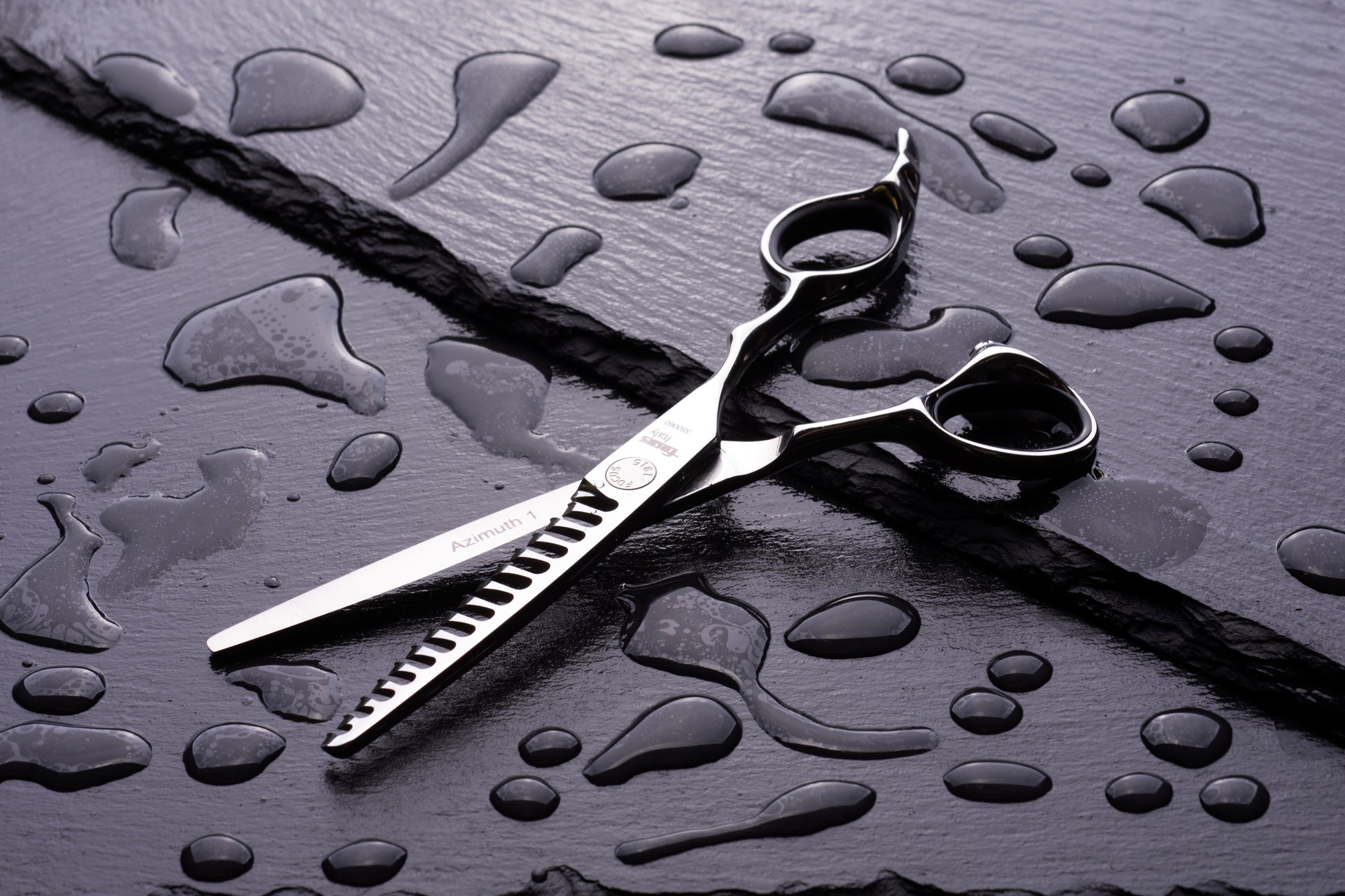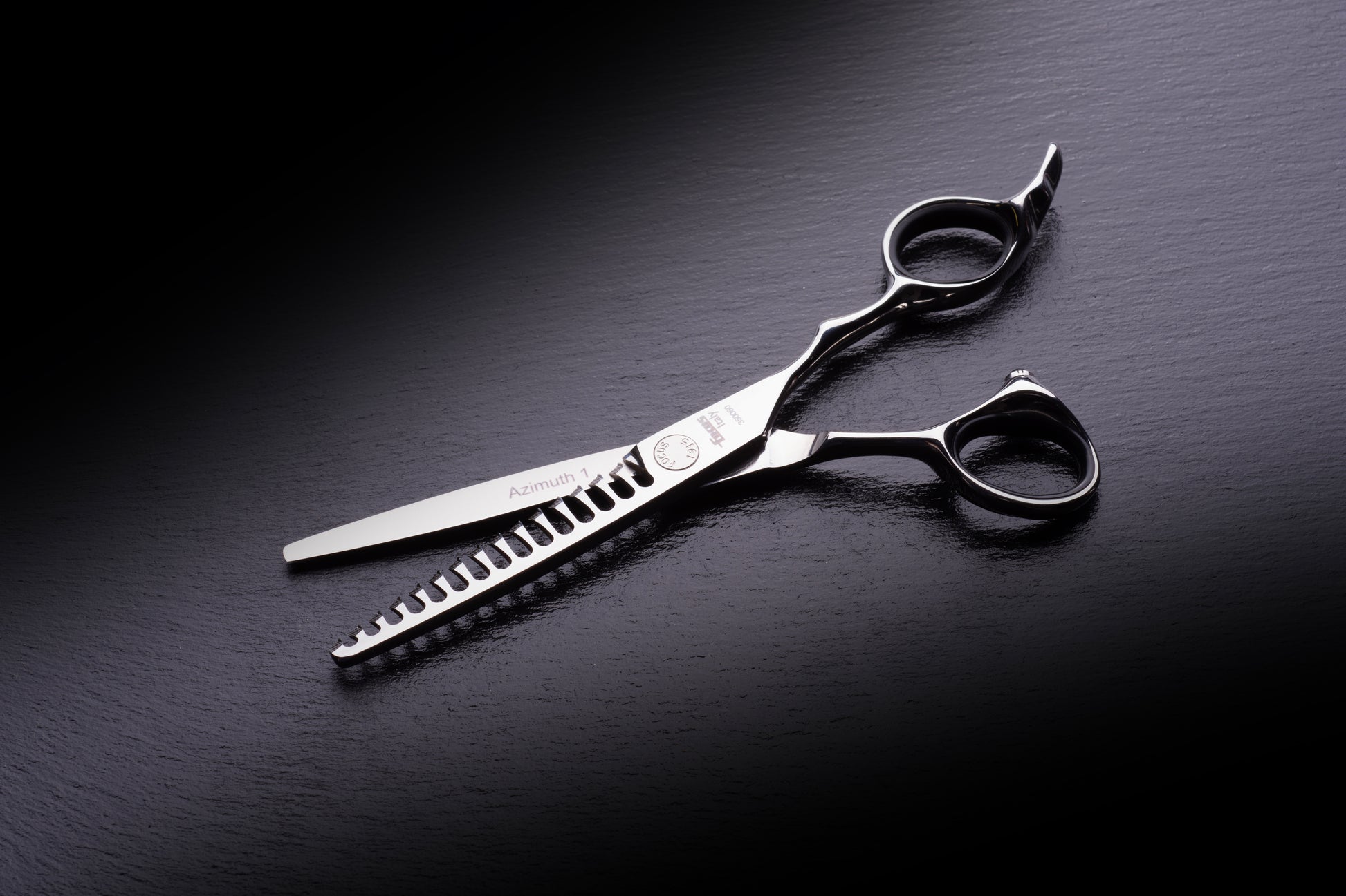 Realizzata in acciaio prodotto appositamente per sinterizzazione unica FSC Focus Super Cobalt. Materiale esclusivo per ottenere capacità di taglio senza eguali e allo stesso tempo garantire leggerezza e solidità proverbiali. La Azimuth1 presenta un design estremamente comodo del manico super-ergonomico, impugnatura offset e codolo allargato per un relax senza paragoni. La dentatura larga presenta una merlettatura disegnata appositamente per agganciare il capello, sfilarlo uniformemente e allo stesso tempo scorrere senza intralci e senza applicazione di forze ulteriori. Affilatura Convex di massima precisione tipologia Shark. La vite FTech bilanciata e autotensionante con ranelle in teflon e cuscinetti a sfera non ha necessità di essere regolata, si adatta alla forza dell’utilizzatore dopo pochi utilizzi. Il bilanciamento risulta rilevante nel mantenere l’elicoidalità delle lame senza che queste si intacchino.