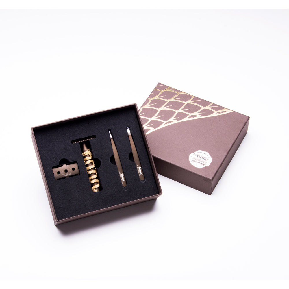 All’interno del cofanetto sono presenti un monta-lama di ricambio per chi desiderasse la testina concava e due pinzette, una ad ago e una obliqua, anch’esse ricoperte in ceramica.